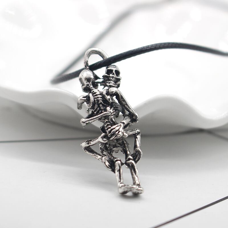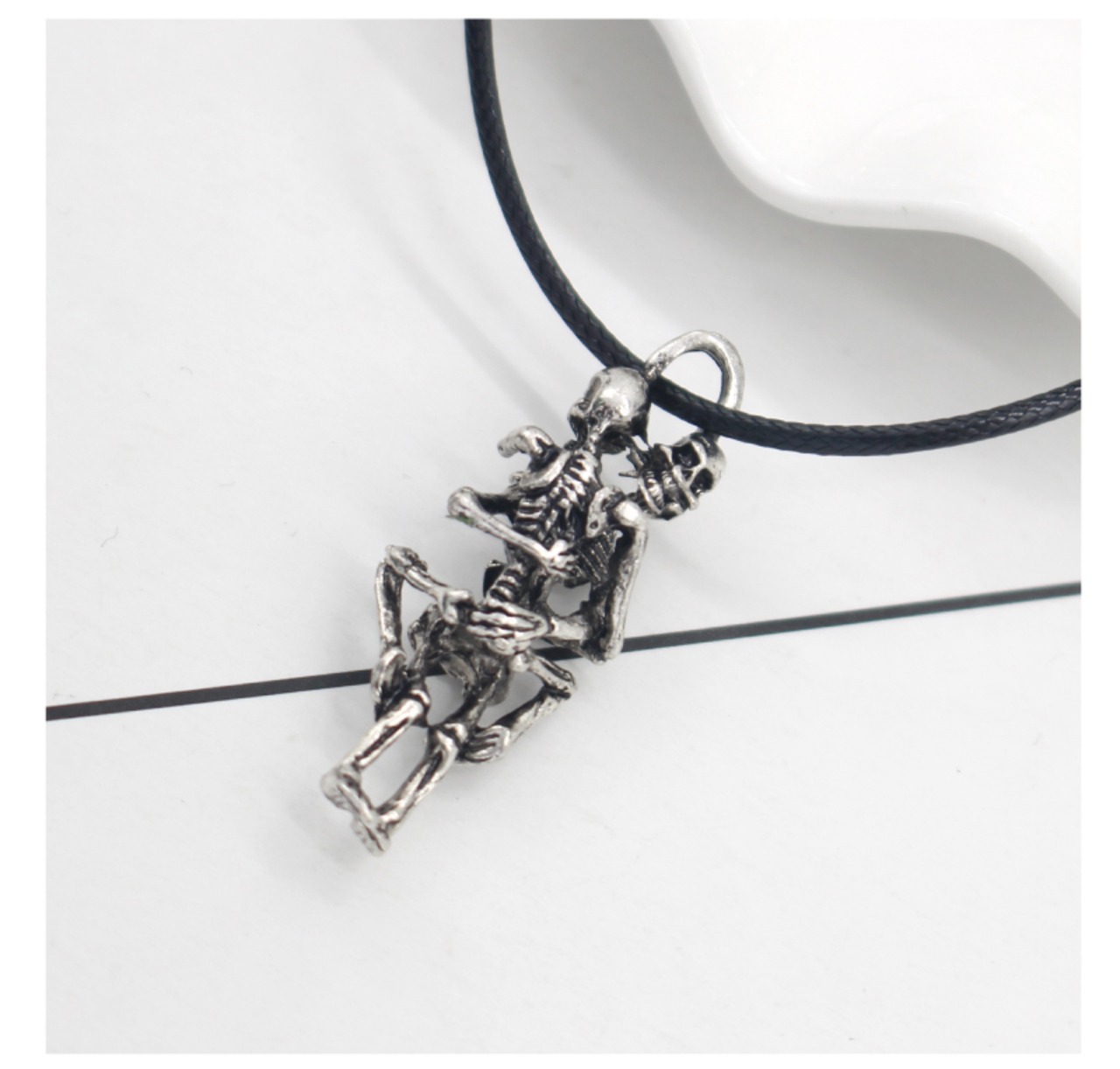 送料無料 ヴィンテージパンクスカルハグペンダントネックレスヒップホップスケルトンレザーロープチェーンネックレス大好き男性女性 レース ビンテージ AE335356658464509995