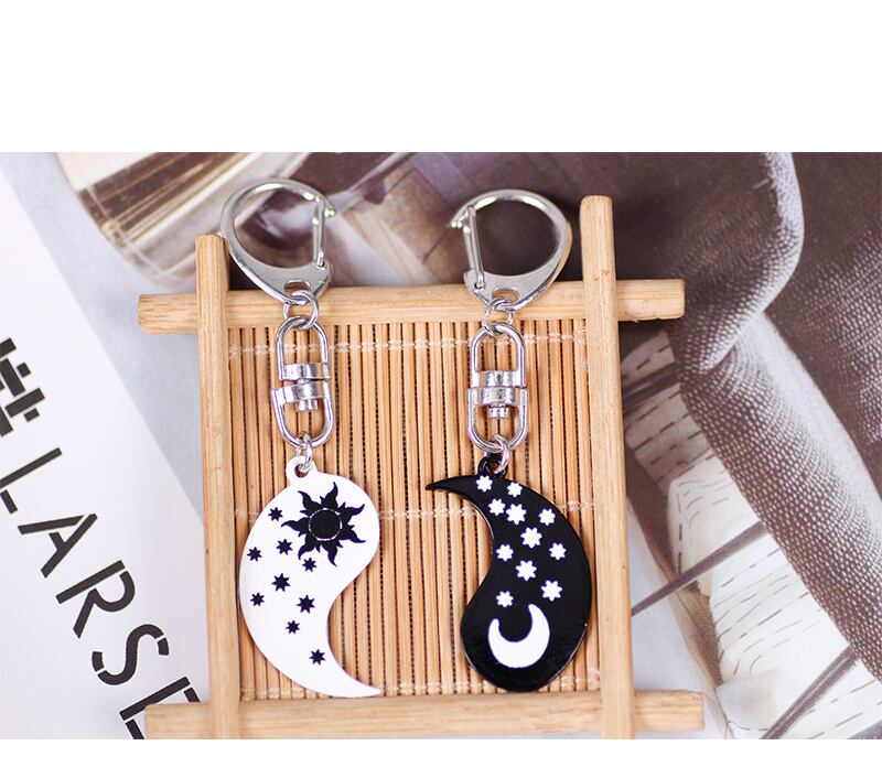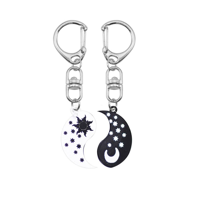 送料無料 レトロ太陽と月黒と白のペンダントキーホルダー男性と女性のお出かけバックパック車の宝石類のギフト ホワイト ブラック リュック チェーン AE335356693400448120