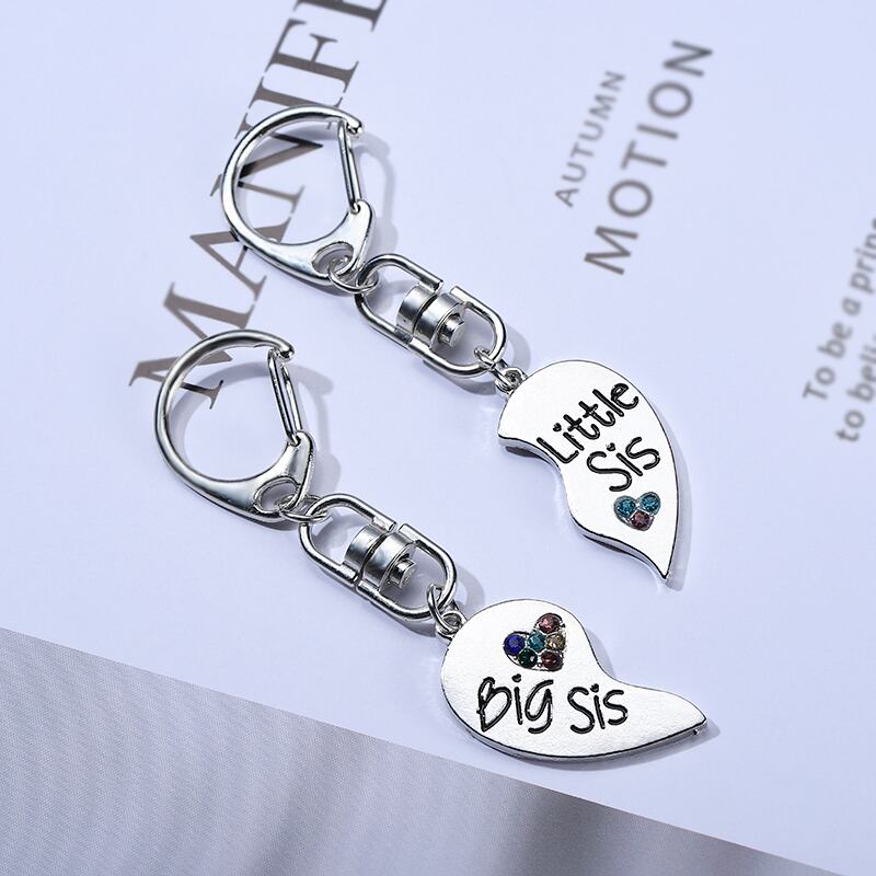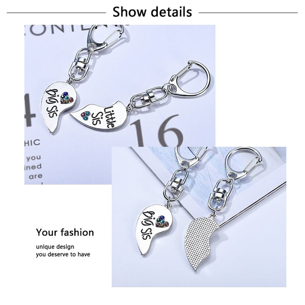 送料無料 2 個セットビッグシスターリトルシステキーホルダーラブハートクリスタルキーチェーンファミリー亜鉛合金カップルパーティージュエリーアクセサリーギフト AE335356663019983221