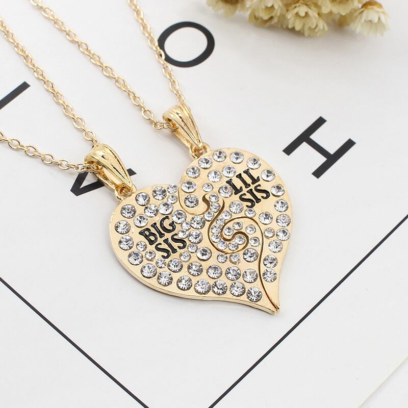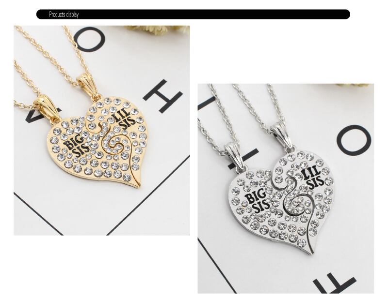 送料無料 2 個セット Big Sis ネックレス女性ビッグリトルシスターラブハートペンダントネックレス姉妹親友チョーカーギフト Collares レース AE335356678992374177