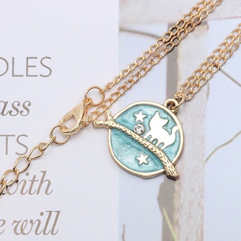 送料無料 Diy 漫画星空猫ツリーペンダントネックレス女性金属エナメルカラフルな動物ネックレスジュエリー レース AE335356621863785976
