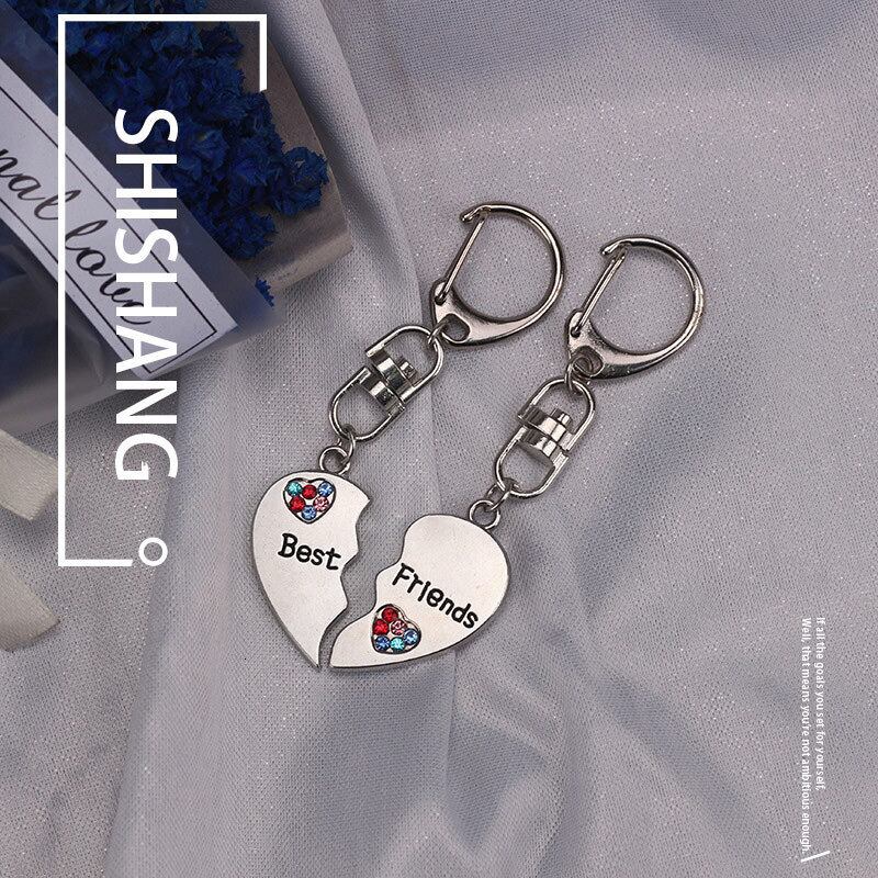 送料無料 DIY 親友キーホルダーハートメタルキーホルダー女性男性ペンダント BFF チャームジュエリーギフト 2019 送料 corlour チェーン AE335356666689837338