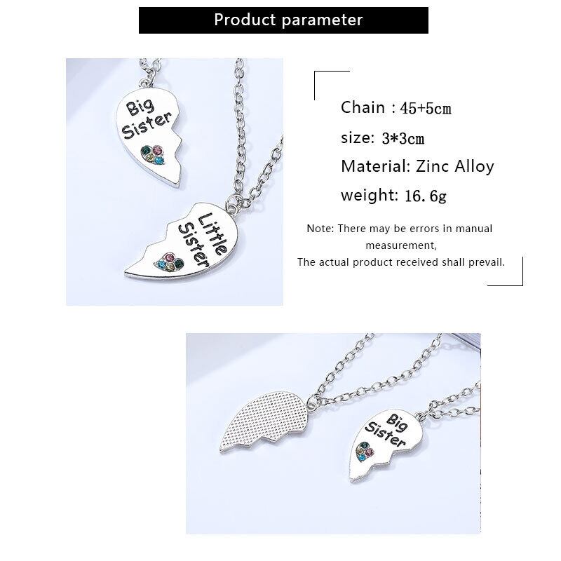 送料無料 ハート型スプライシングネックレス Kpop シスタージュエリー女性 2022 愛のラインストーン 2 点セット友人ロングチェーン レース AE335356668674810929