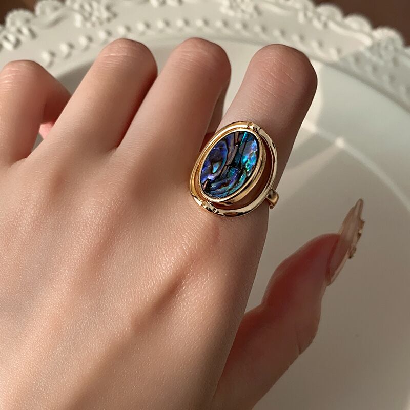送料無料 KAITIN 両面回転可能なアワビシェルリング女性レトロライト高級リングブレスレットギフト 指輪 AE88788735305570118