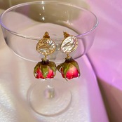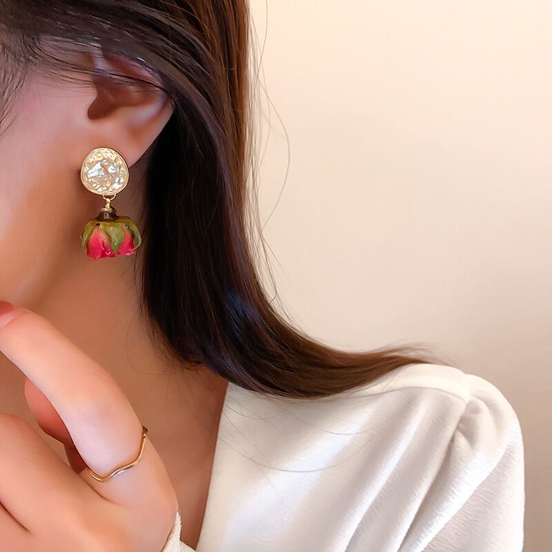 送料無料 KAITIN 植物標本ローズペンダントイヤリング女性心から赤いドライフラワーイヤリングパーティージュエリー レッド 指輪 フラワーデザイン AE8878878944075341