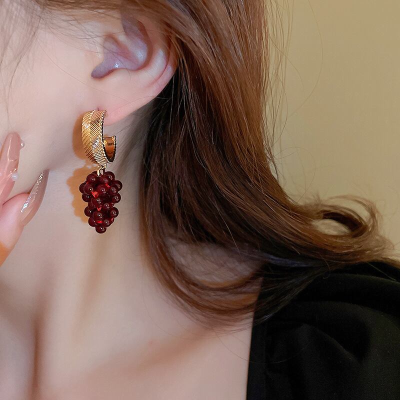 送料無料 KAITIN 赤ブドウイヤリング女性レトロフレンチスタイル C 字型ブラブライヤリング高級ジュエリー レッド 指輪 AE88788729808093960