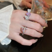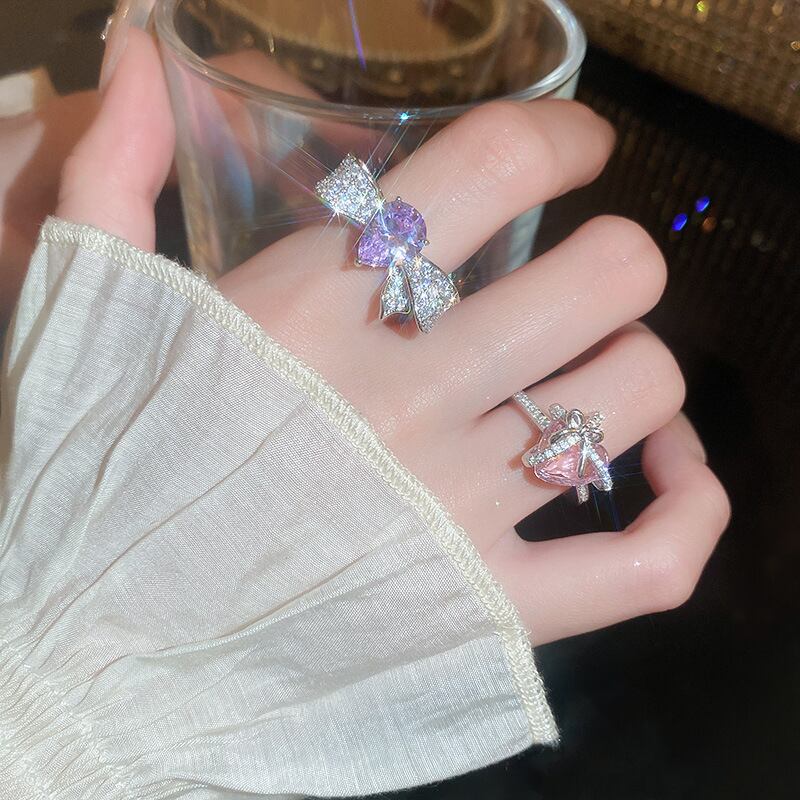 送料無料 KAITIN ジルコン弓ハート女性オープンリングライト高級スタイル人差し指絶妙なリングジュエリー女性 リボン 指輪 AE88788783894877644