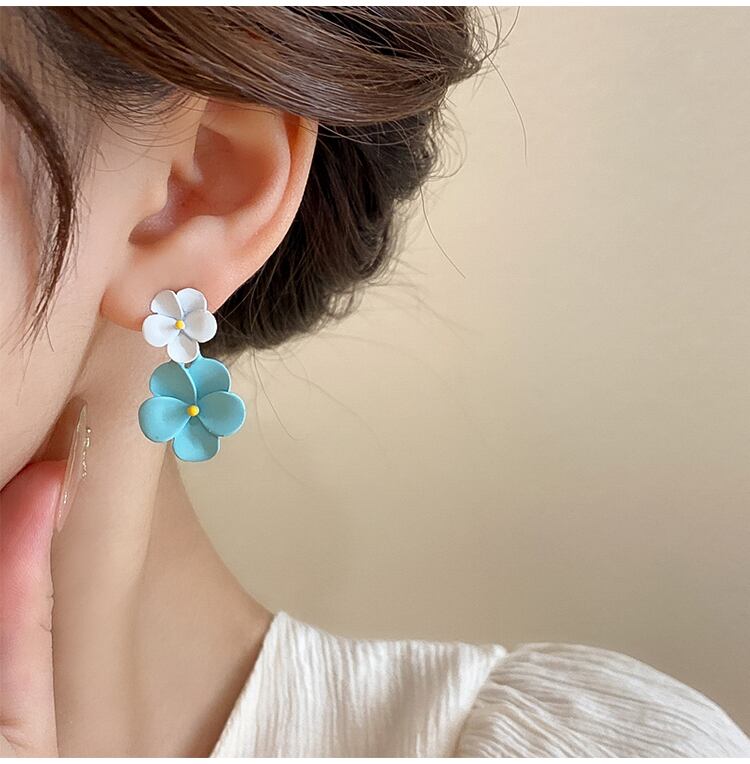 送料無料 KAITIN グリーンフラワーイヤリング女性の気質人格 2023 気質イヤリングギフト 指輪 フラワーデザイン AE88788732503243228