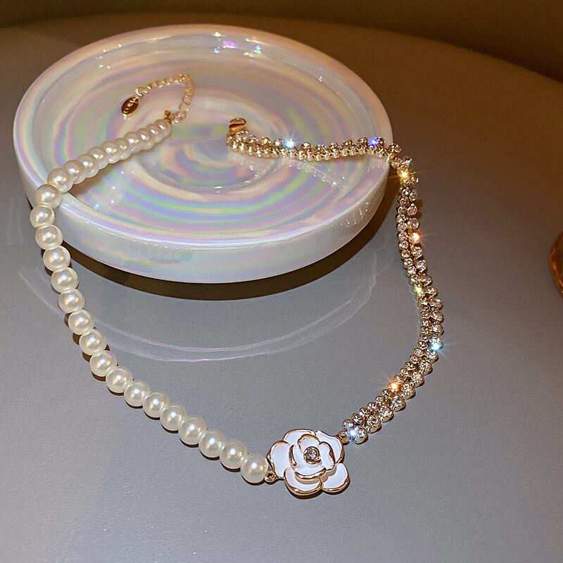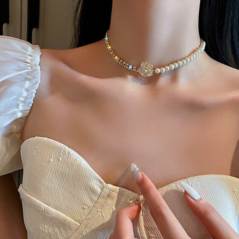 送料無料 KAITIN フランスヴィンテージ椿パールネックレスレディースライト高級首輪チェーンネックチェーンスイートクールスパイシーガールスタイル 2023 レース 大人ガーリー スウィート キュート カジュアル 真珠 ビンテージ AE88788732312418699