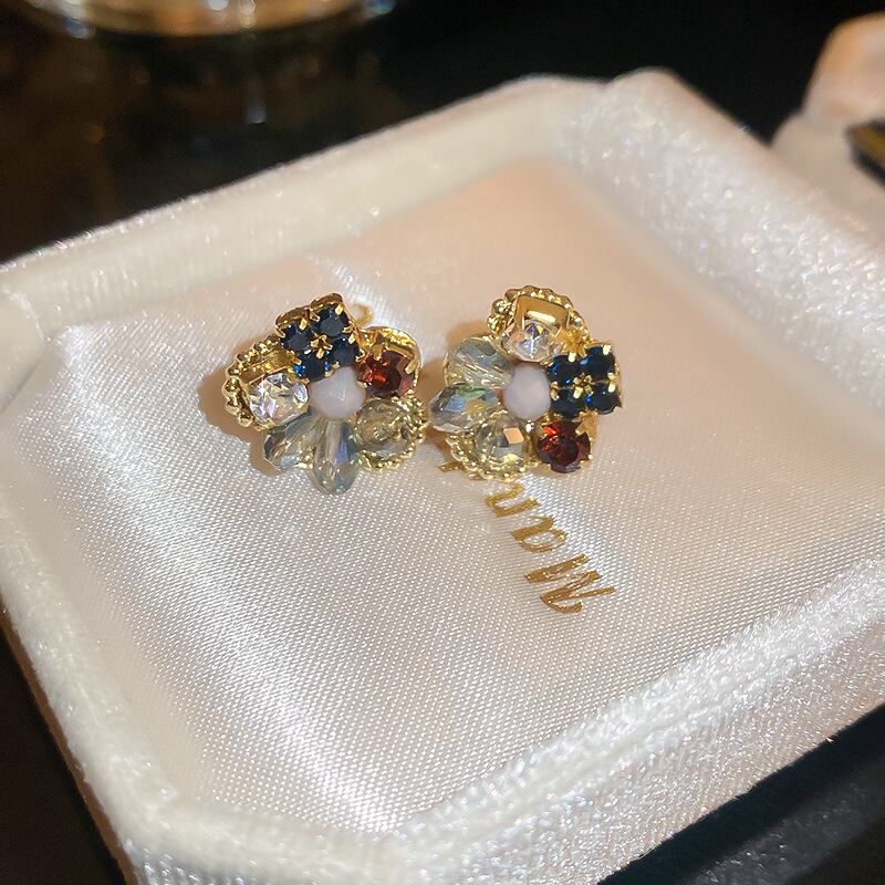 送料無料 KAITIN カラフルなダイヤモンドセットクリスタルフラワーイヤリング女性フレンチヴィンテージプレミアムスタッドイヤリング通勤ライト高級ジュエリー 指輪 フラワーデザイン ビンテージ AE88788745325649347