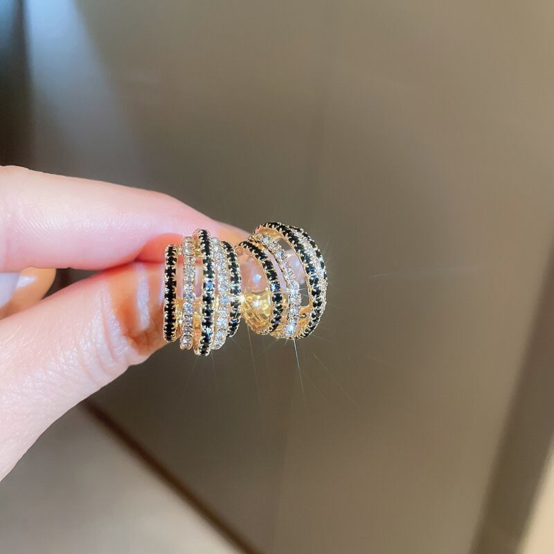 送料無料 フルダイヤモンド幾何学的な C 型多層フープイヤリング可能パーソナライズされた気質ライト高級イヤリング女性 レッド 指輪 AE88788780418357319