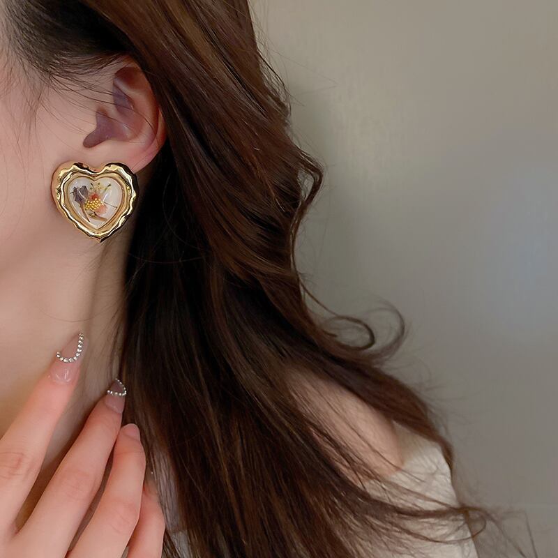 送料無料 ヴィンテージ透明ハートラウンドフラワースタッドピアス女性甘いかわいいピアス 2022 ガールジュエリー イヤリング 大人ガーリー スウィート キュート カジュアル リング 指輪 フラワーデザイン ビンテージ AE88788774283124667
