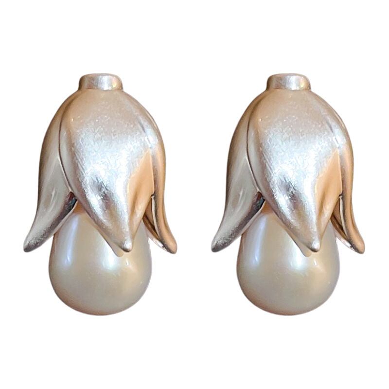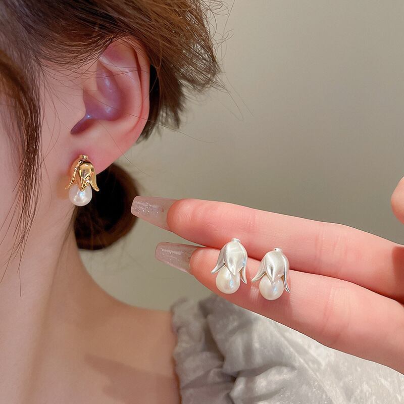 送料無料 KAITIN シルバー針パールフラワーイヤリング女性フレンチライト高級パーソナライズされたシンプルな多用途イヤリングガール 真珠 指輪 フラワーデザイン 銀 AE88788727083152635