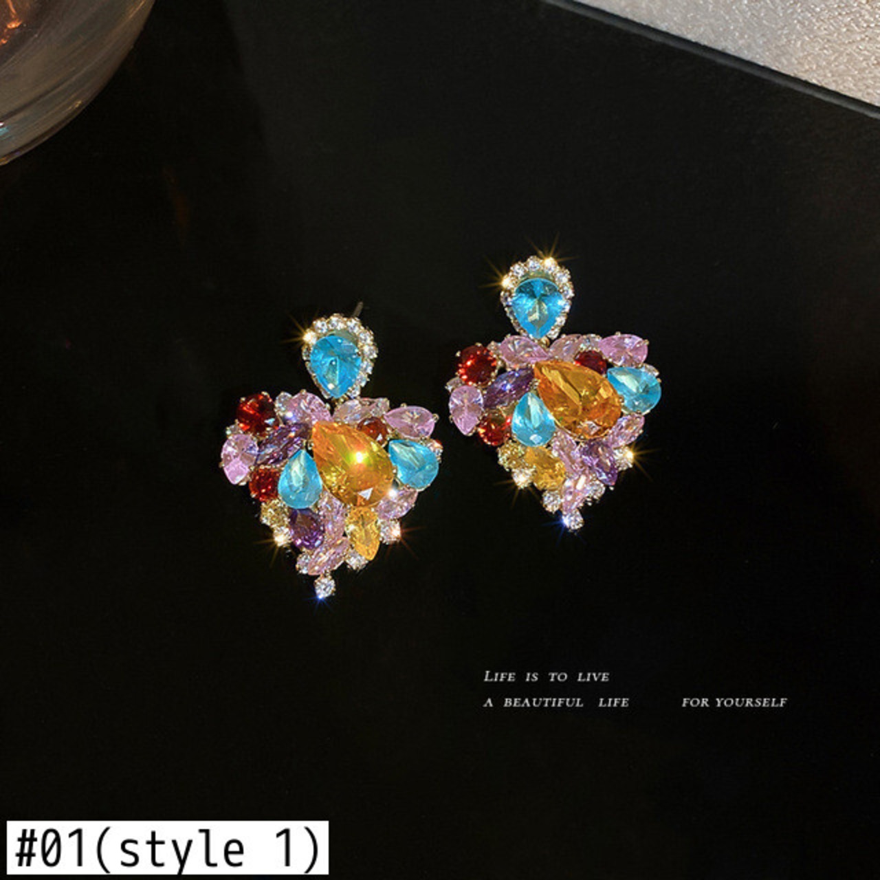 送料無料 KAITIN ハートウォーター s ダイヤモンドイヤリング女性カラフルなレトロライト高級イヤリングペンダントジュエリーパーティー 指輪 AE88788727146518388