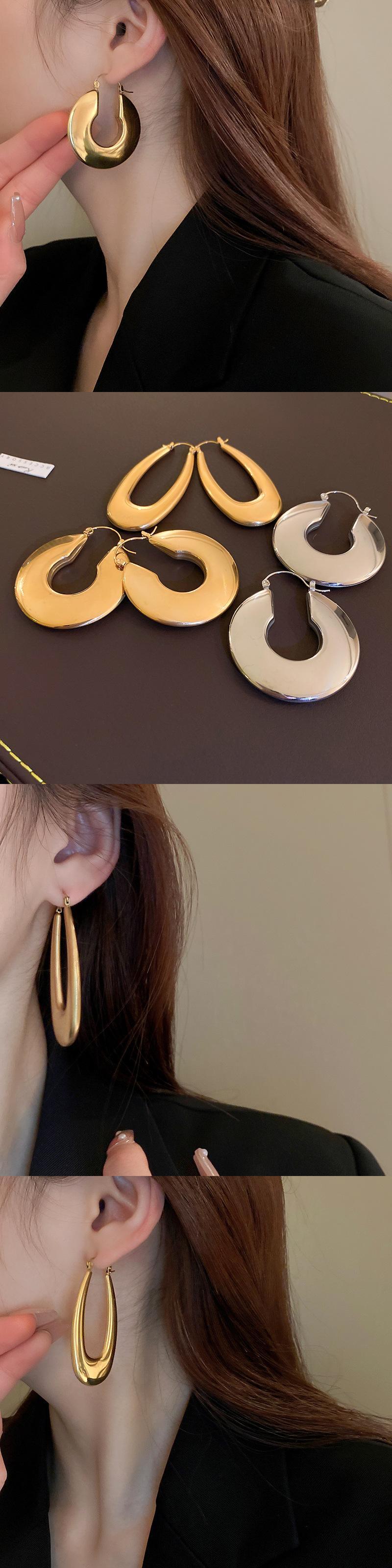 送料無料 KAITIN チタン鋼 U 字型イヤリング女性パーソナライズされた気質誇張フープイヤリングジュエリーパーティーギフト 指輪 AE88788733107010264