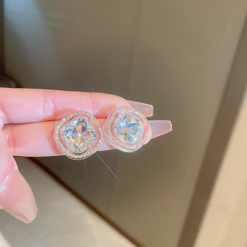 送料無料 KAITIN シルバー針幾何学ラインストーンアクリルイヤリングパーソナライズされたシンプルなイヤリング気質女の子 指輪 銀 AE88788724424847178