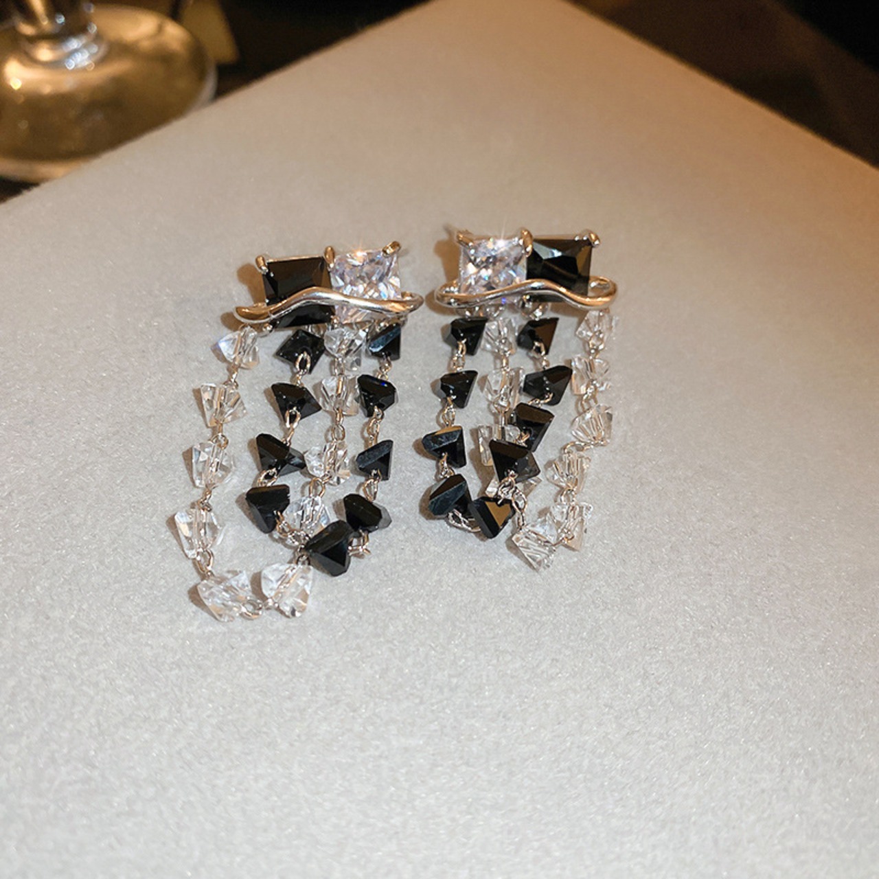 送料無料 KAITIN ジルコンスクエアクリスタルチェーン電話女性イヤリング人格イヤリング気質シルバー針イヤリング 指輪 銀 スクウェア AE88788781379919850