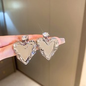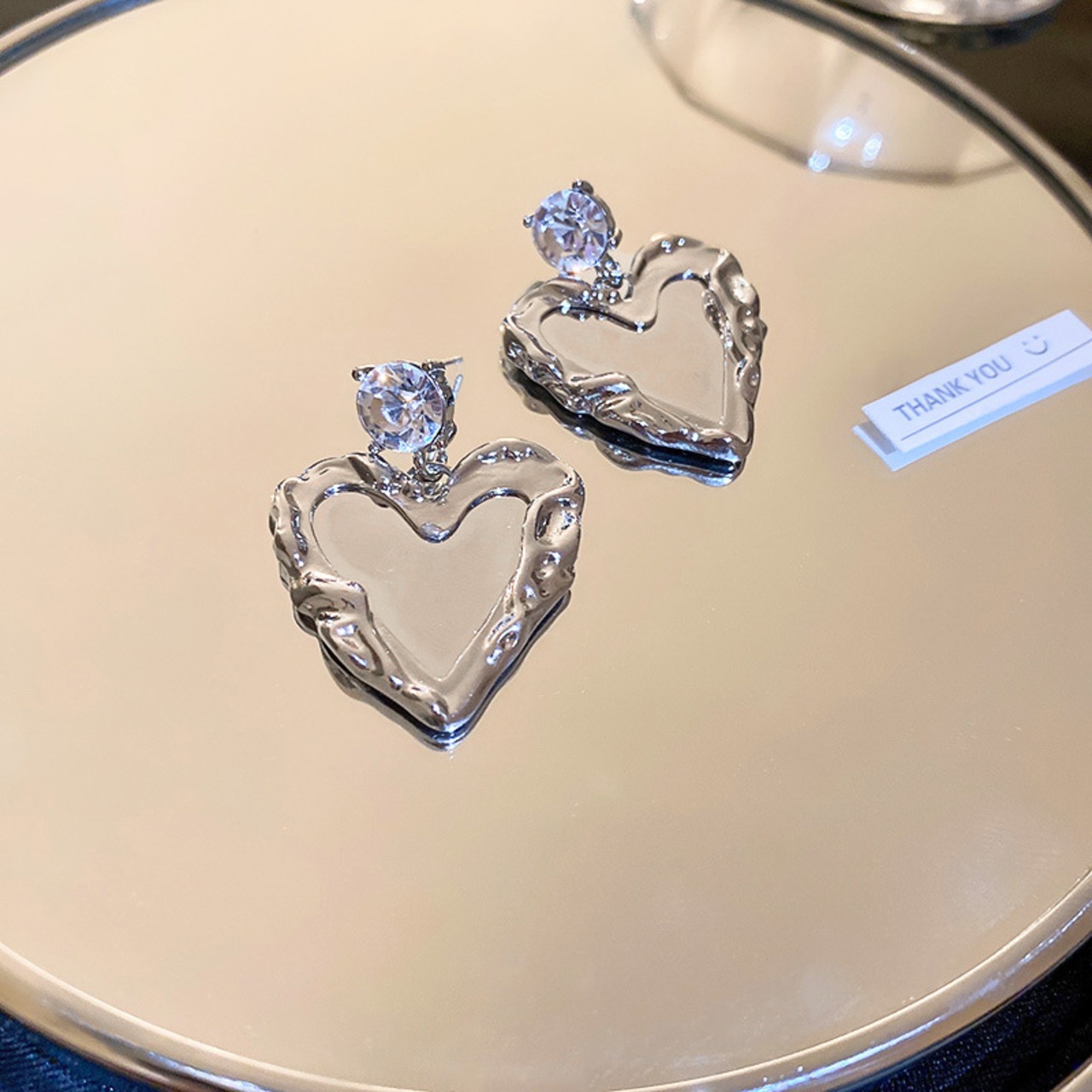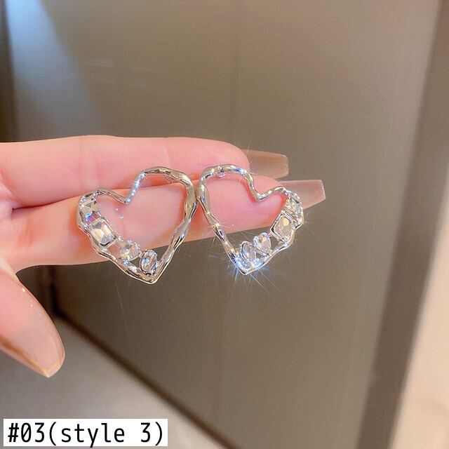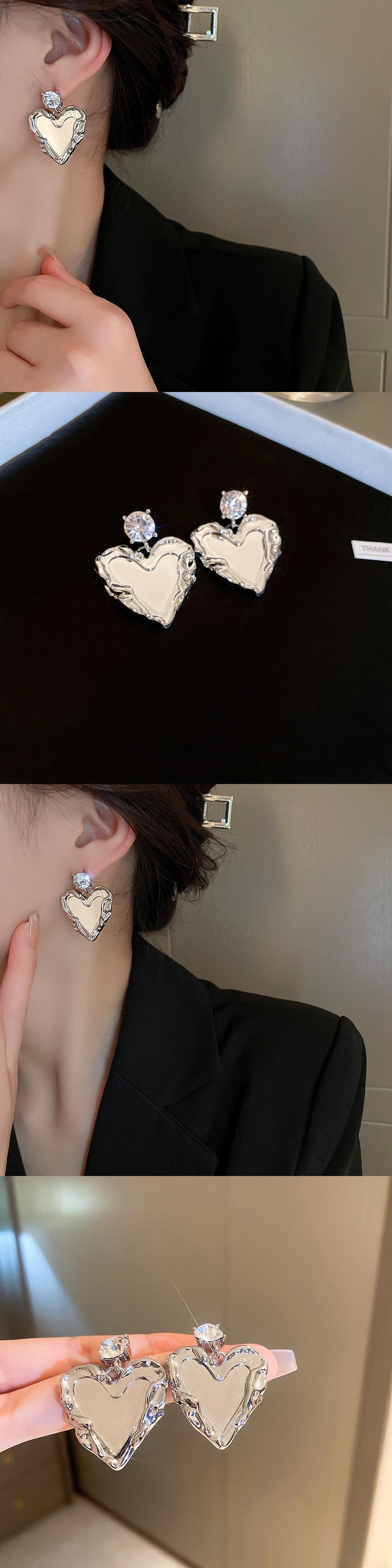 送料無料 KAITIN ダイヤモンドプリーツハート女性イヤリング感覚気質シルバーカラーイヤリング女性人格イヤリング 指輪 銀 AE88788745970007789