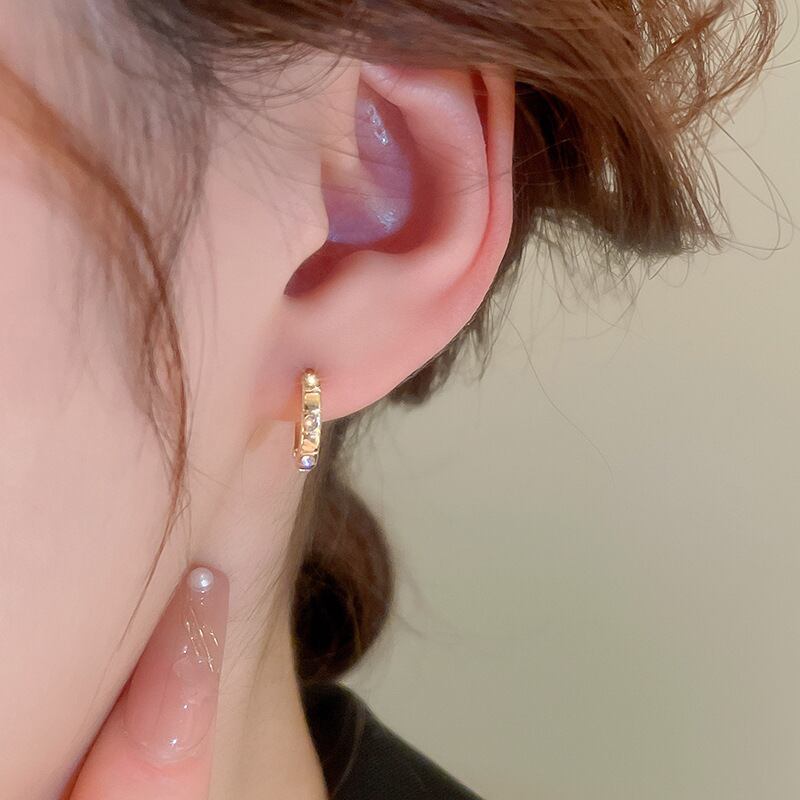送料無料 KAITIN 象嵌ラインストーンイヤリング女性シンプルなジルコンフープイヤリング気質耳のアクセサリー 指輪 AE88788751017068981