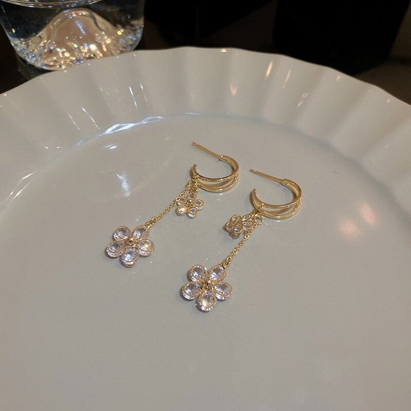 送料無料 2022 ジルコンフラワーペンダントイヤリング女性の気質女性女の子ギフト 指輪 フラワーデザイン AE88788735407514671