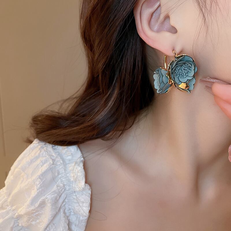 送料無料 エスニックブルー布フラワースタッドピアス 925 シルバーニードルピアス絶妙な銅アクセサリーガールズギフト イヤリング リング 指輪 フラワーデザイン 銀 AE88788713739164024