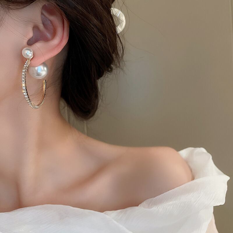 送料無料 KAITIN 幾何学的な真珠の女性のイヤリング象嵌ダイヤモンドフレンチフープイヤリング女性の気質パーティーウェディングジュエリー パール 指輪 AE88788791951826956