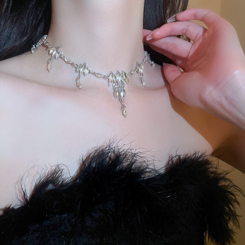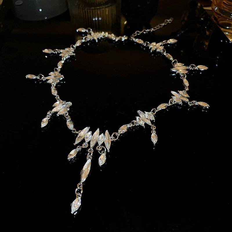 送料無料 KAITIN 誇張されたダイヤモンドがちりばめられたオーバルネックレス水鎖骨チェーンミニマリストネック個性気質ネックレス レース AE88788743934616616