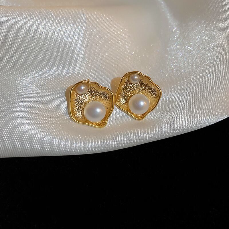 送料無料 KAITIN 淡水パール不規則な女性のイヤリングシンプルなスタイルの幾何学スタッドイヤリング 2023 ゴールドメッキジュエリー 真珠 指輪 AE88788743338244878