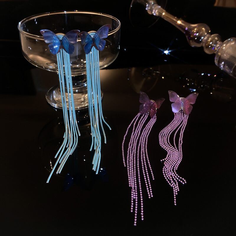 送料無料 KAITIN 蝶ロングテルイヤリング女性誇張シルバーニードルイヤリング気質ギフトジュエリー 指輪 銀 AE88788757825756861