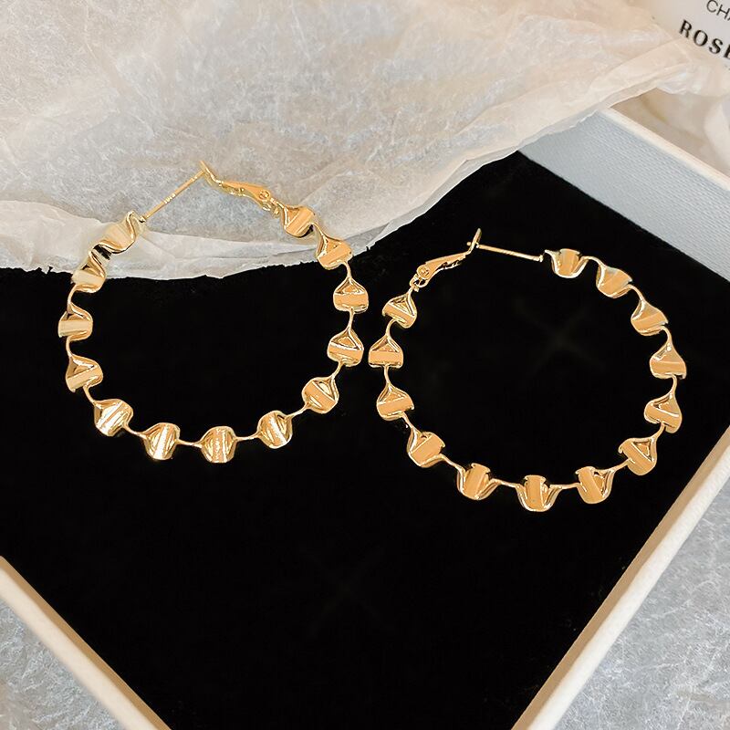 送料無料 KAITIN リンクルメタルフープイヤリング女性スタイルサークルライト高級ゴールドメッキ女性イヤリング最小限のジュエリーギフト 指輪 AE88788722833740645