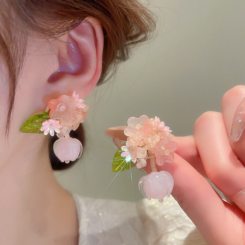 送料無料 KAITIN クリスタルフラワーイヤリング女性甘いピンクのスタッドピアス人格スタイルガールアクセサリー 大人ガーリー スウィート キュート カジュアル 指輪 フラワーデザイン AE8878871059968345