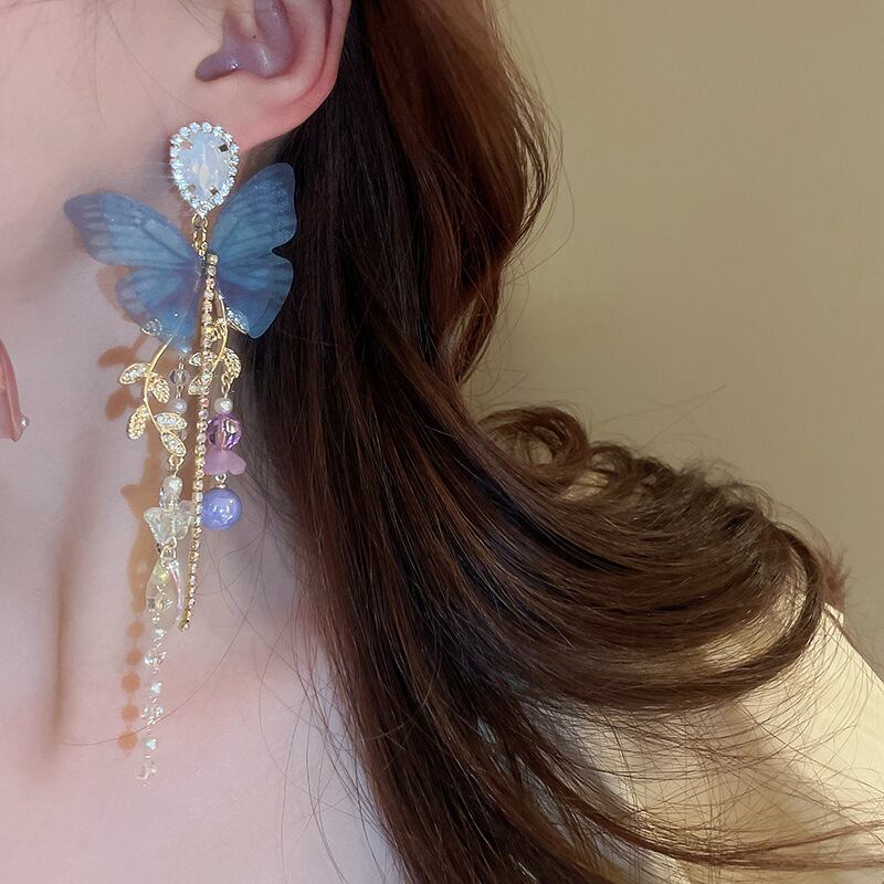 送料無料 KAITIN ダイヤモンドセットクリスタルメッシュ蝶真珠の女性のイヤリングロングテルドロップイヤリングジュエリー 2023 デイリーギフト パール 指輪 AE88788710882731209