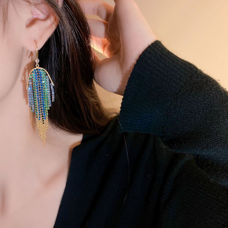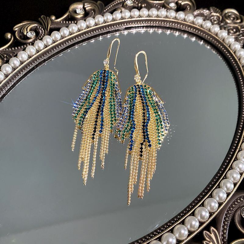 送料無料 象嵌グリーンブルーラインストーンイヤリング女性の高級ロングテルイヤリングヴィンテージステートメントパーティーウェディングジュエリー 指輪 ビンテージ AE8878875328131794