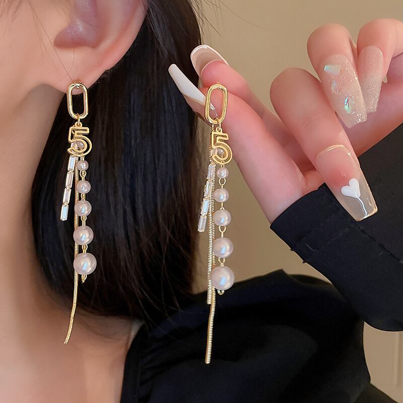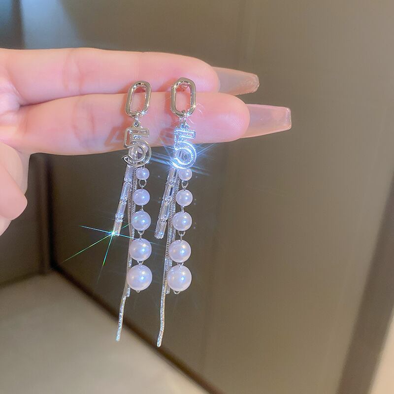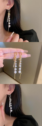 送料無料 KAITIN ジルコンパールロングテルイヤリング女性デジタルイヤリングコケット気質高級ジュエリーギフト 真珠 指輪 AE8878871741241142