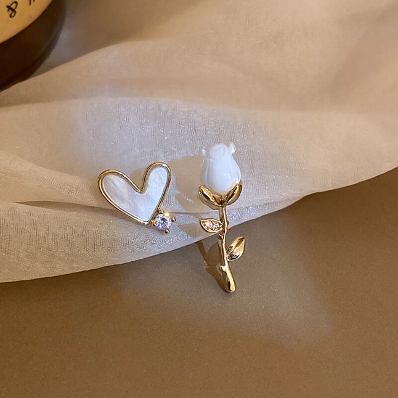 送料無料 KAITIN 非対称ジルコン愛チューリップフラワーイヤリング女性の気質ライト高級イヤリングジュエリーデイリーギフト 指輪 フラワーデザイン AE88788768436895419