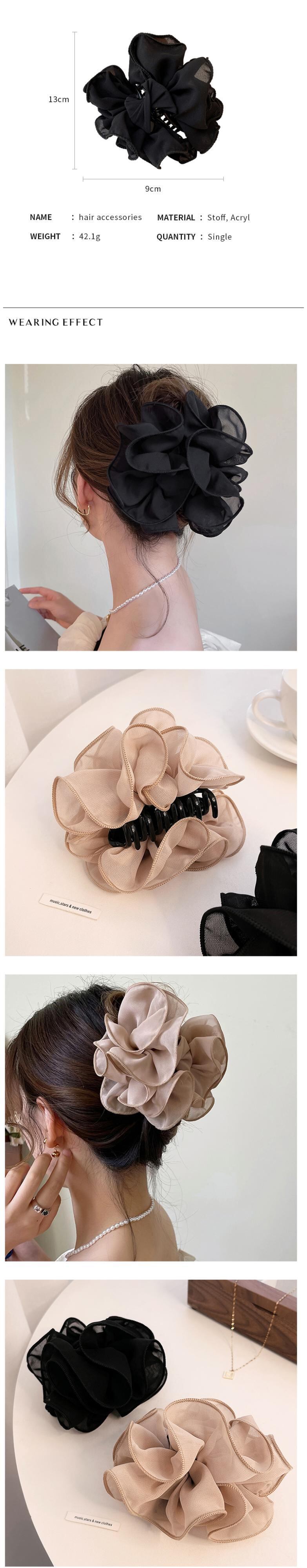 送料無料 大シフォン爪クリップヘアリボン大サイズ黒生地リボンフラワーローズ爪顎クランプクリップアクセサリー女性 ブラック 大きめサイズ フラワーデザイン AE88788726978517314
