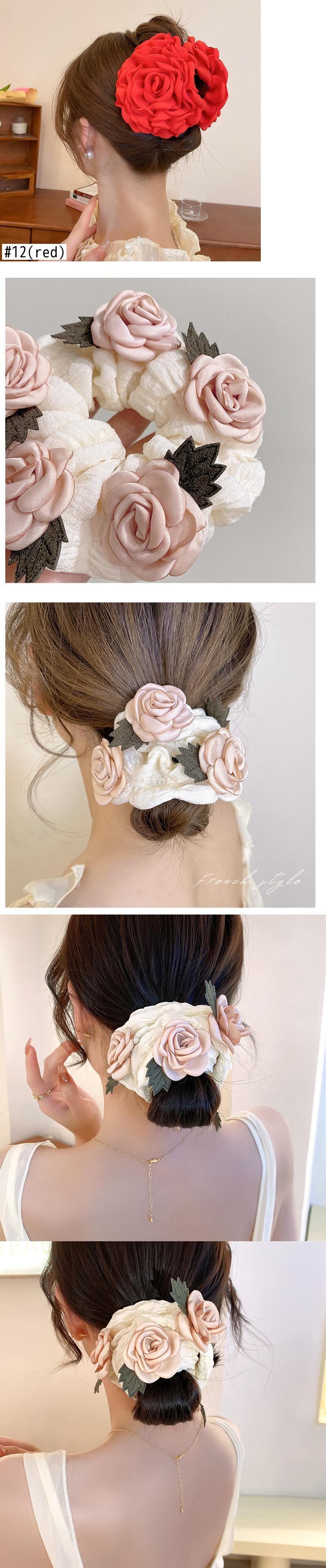 送料無料 KAITIN 椿の花のヘアリング ese と気質ヘアロープ多用途ヘアアクセサリー 指輪 フラワーデザイン AE88788734681040718