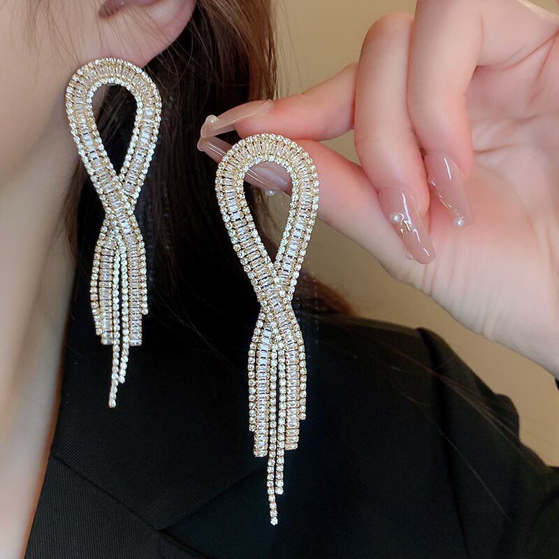 送料無料 KAITIN ダイヤモンド象嵌ジルコン幾何学的な Tel イヤリング女性ライト高級イヤリングパーソナライズされた誇張されたジュエリーギフト 指輪 AE88788758356916166