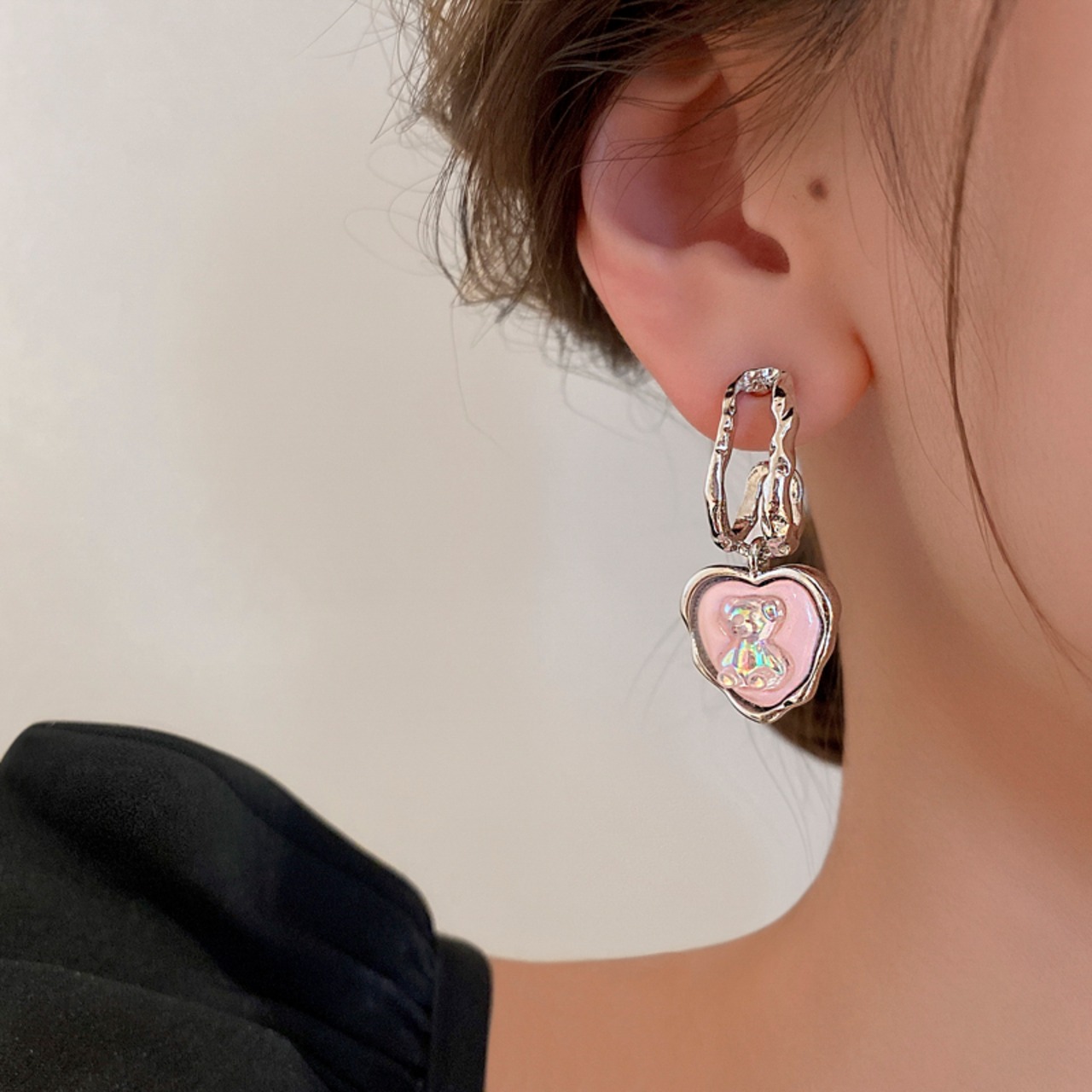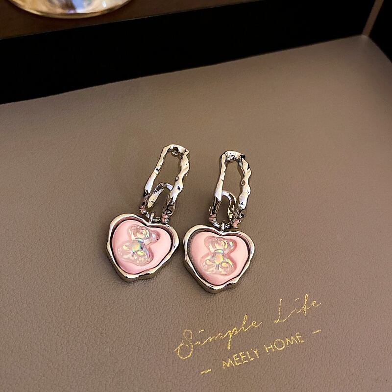 送料無料 KAITIN ユニークなハートクマのイヤリング女性 2023 イヤリング多用途イヤリング女性ジュエリー 2022 トレンド 指輪 AE88788766833651033