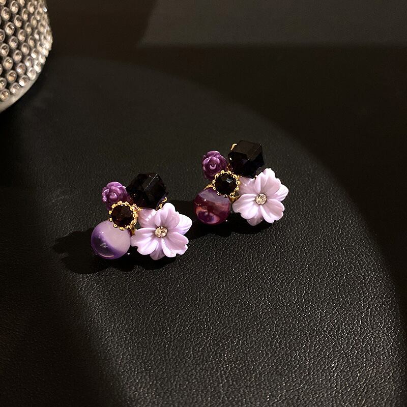 送料無料 クリスタルフラワースタッドピアス女性 925 シルバー針女性イヤリングレトロセンスガールパーティー 5 色ジュエリー 指輪 フラワーデザイン 銀 AE88788715846683326