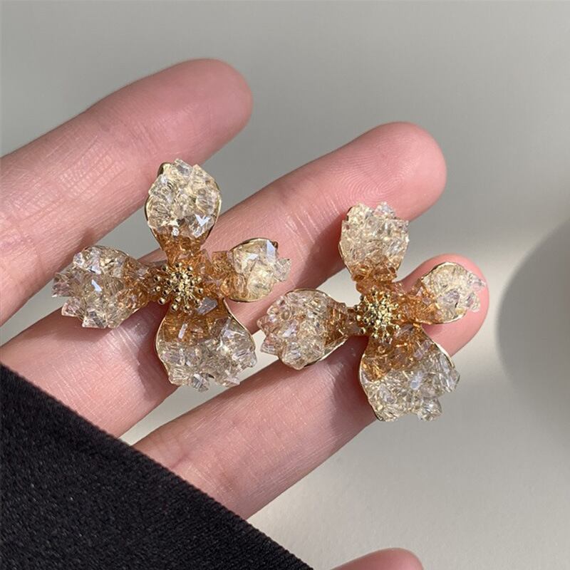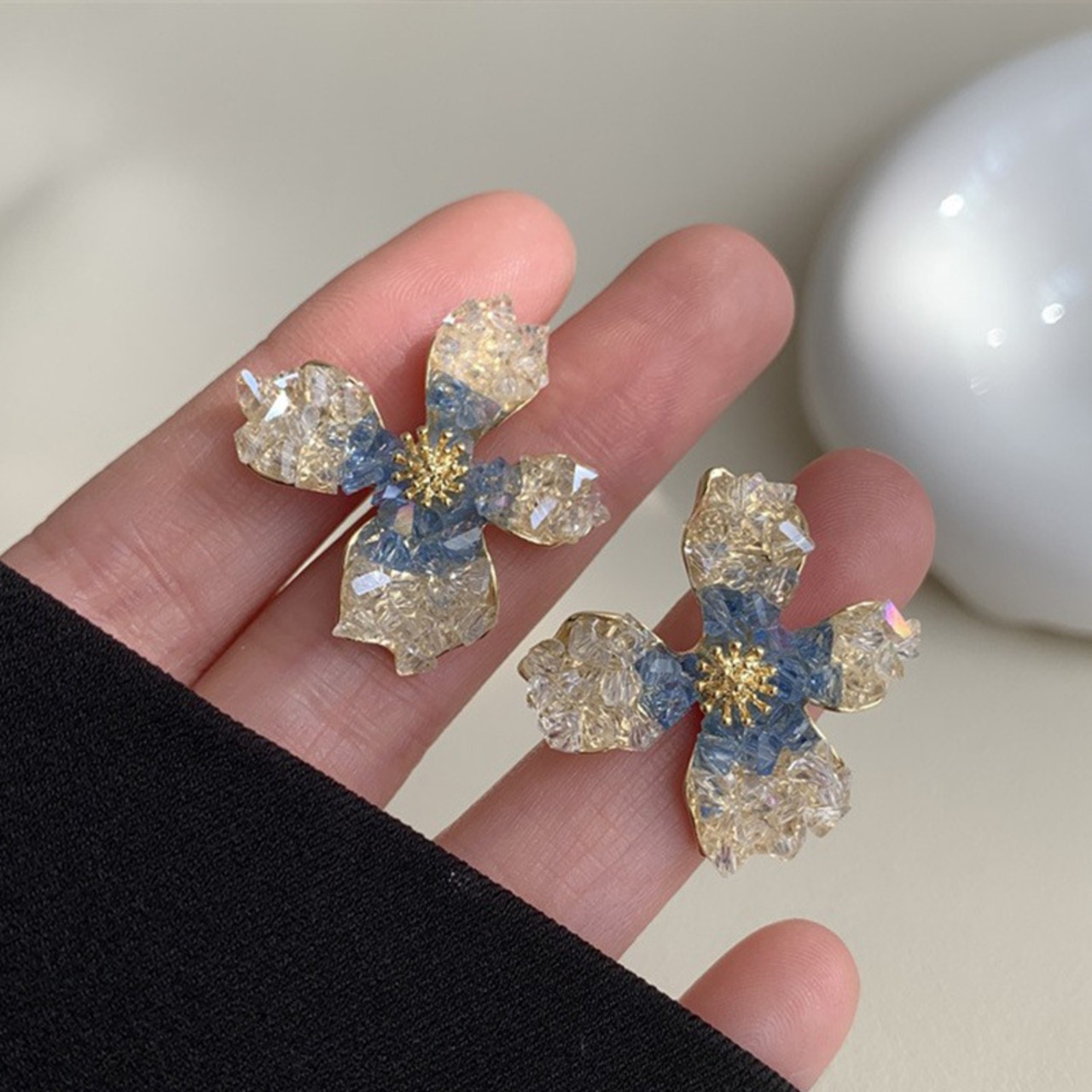 送料無料 クリスタルフラワーイヤリング女性人気の多用途シルバー針スタッドイヤリングライト高級スタイル通勤ジュエリー 指輪 フラワーデザイン 銀 AE88788757554371150