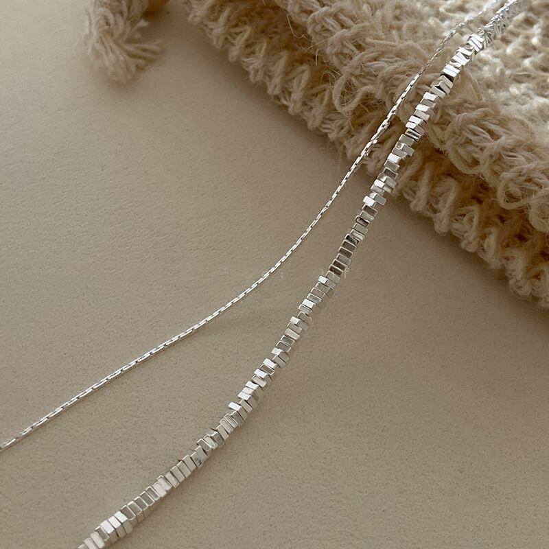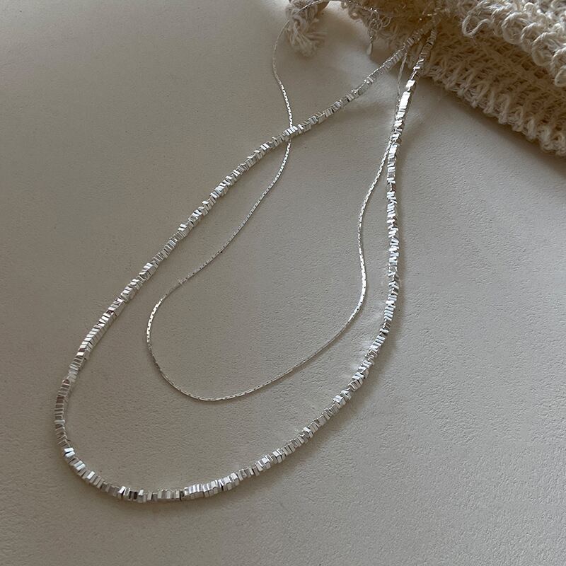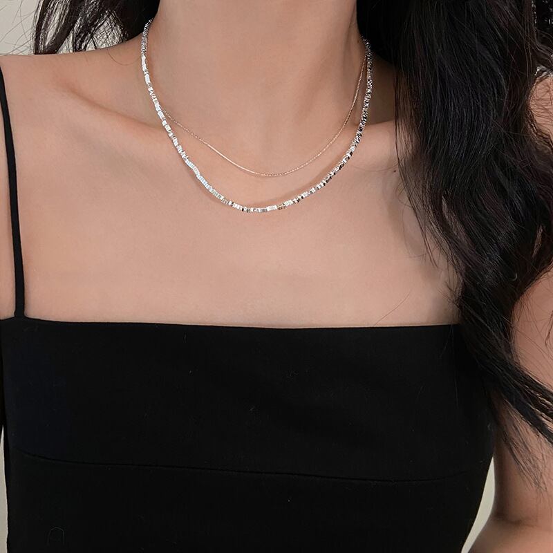 送料無料 KAITIN シルバー 二層フォールド ダイヤモンド ネックレス 万能鎖骨チェーン シンプル トレンド ネックレス レース 銀 AE88788762300809075