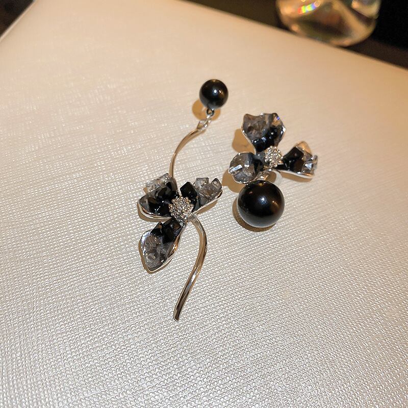 送料無料 KAITIN 非対称クリスタルフラワーラウンドビーズ女性のイヤリングイヤリングトレンドジュエリー女性 2023 ギフト 指輪 フラワーデザイン AE8878875479692360