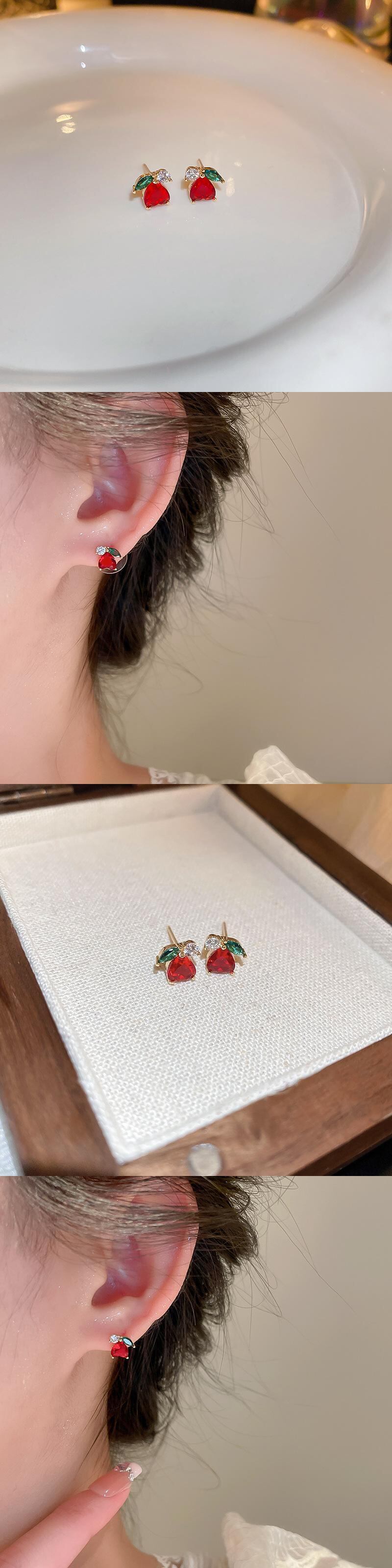 送料無料 KAITIN ジルコンハート女性イヤリングパーソナライズ葉シルバー針スタッドピアス多彩な気質スタイルジュエリー 指輪 銀 AE88788779804588650