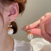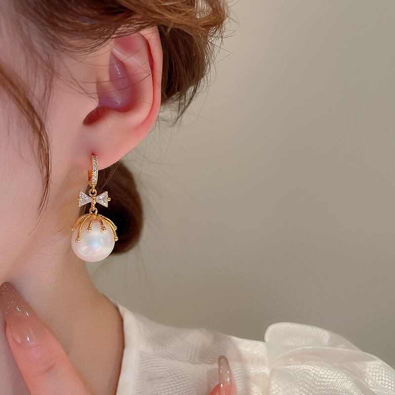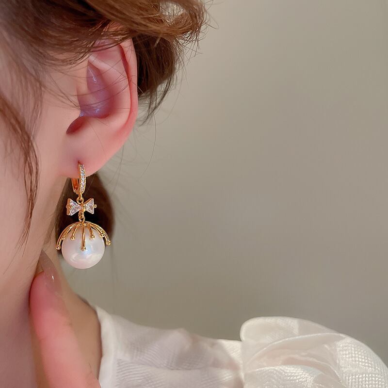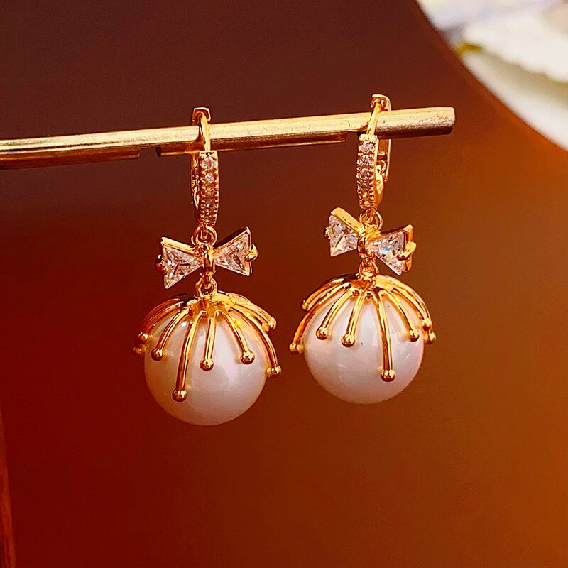 送料無料 KAITIN ジルコンパールボウイヤリング女性フランスの気質フープイヤリング気質ジュエリーガールギフト リボン 真珠 指輪 AE88788725235409595