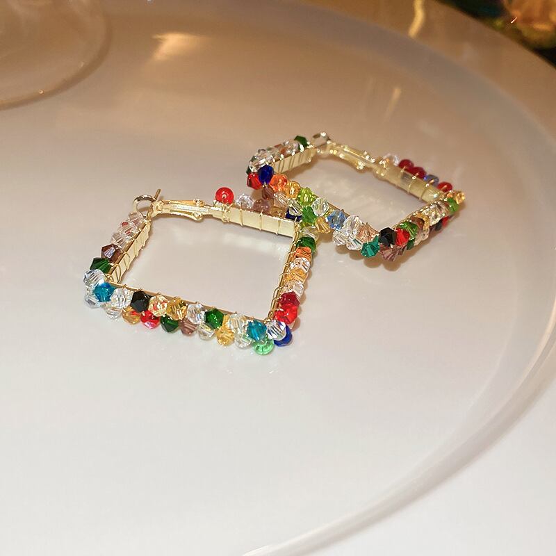 送料無料 クリスタル幾何学的なスクエアイヤリング女性ライト高級ミニマリスト女性ダイヤモンドフープイヤリングパーティーギフトジュエリー 2023 指輪 スクウェア AE88788742019243936