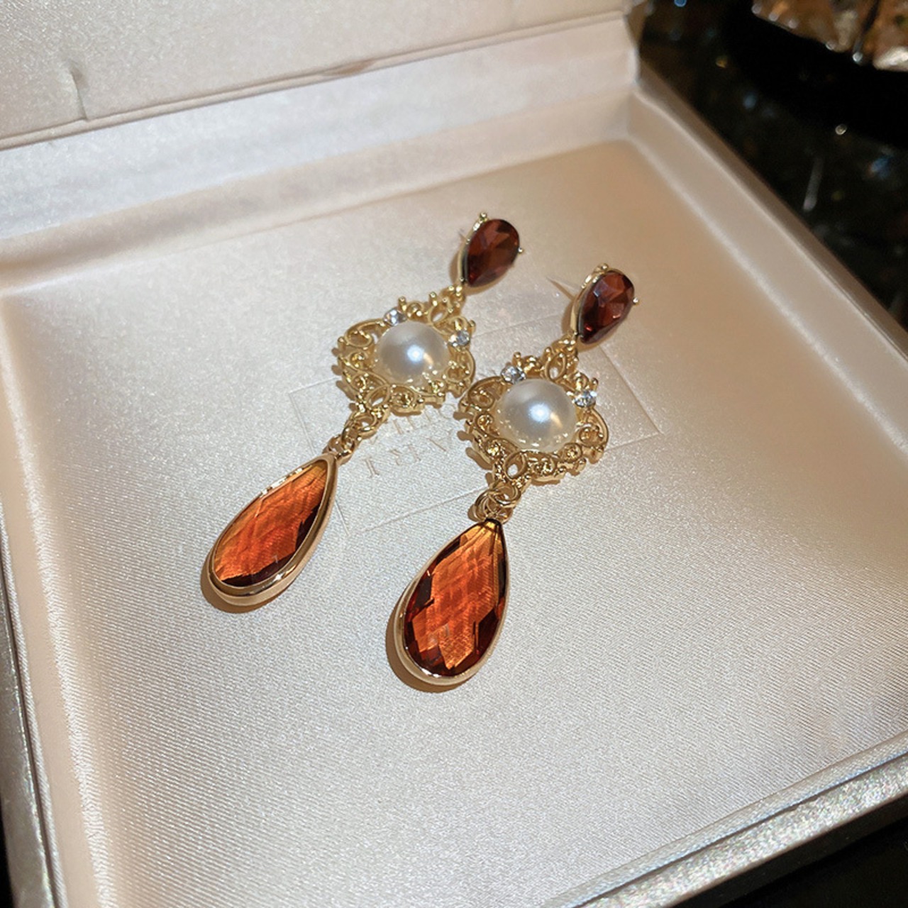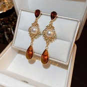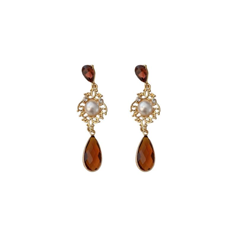送料無料 KAITIN 水クリスタルパールパターンイヤリング女性宮殿スタイルの気質イヤリングジュエリー レース 真珠 指輪 AE88788723625930036