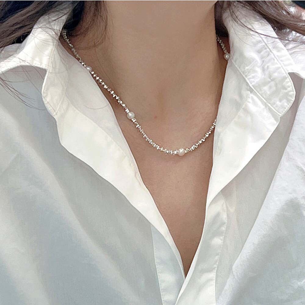 送料無料 トライアングル シルバー パール ネックレス サウス ライト ラグジュアリー クラウド カラー チェーン ネックチェーン ネックウェア レース 真珠 銀 AE88788761088642590