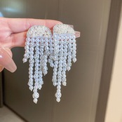 送料無料 KAITIN ダイヤモンドパールクラゲ電話イヤリング女性誇張イヤリングライト高級シルバー針ジュエリー 真珠 指輪 銀 AE88788753929786045