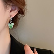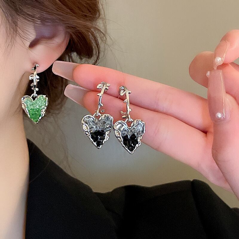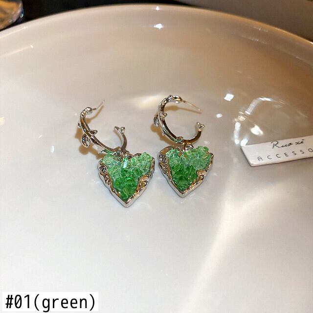 送料無料 カラークリスタルハート C 字型イヤリング女性甘いクールセンスシルバー針ダングルイヤリング レッド 大人ガーリー スウィート キュート カジュアル 指輪 銀 AE88788731403097961